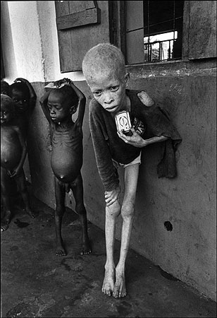 Nine year old Ibo albino clutching an empty corned beef tin Biafra, Nigeria April 1968 © Don McCullin