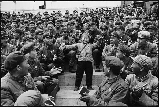 Kang Wenjie, a five-year-old child prodigy, performs the "Loyalty Dance" at Red Guard Square. Harbin, Heilongjiang province April 28, 1968 © Li Zhensheng