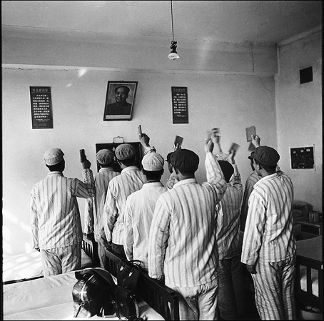 Military-hospital patients make their morning pledge of loyalty to Mao's picture. Harbin, Heilongjiang province September 5, 1968 © Li Zhensheng
