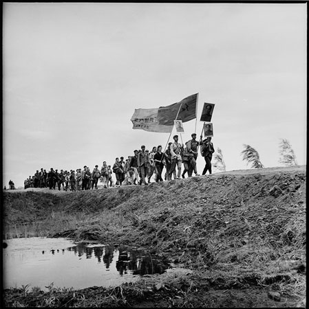 Writers and artists march through Wuchang county on their way to participate in manual labor. Heilongjiang province August 18, 1968 © Li Zhensheng