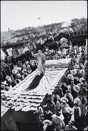 National Day celebration with marchers carrying a statue of Mao on a float adorned with sunflowers symbolizing the people following Mao the way flowers follow the sun. Harbin, Heilongjiang province October 1, 1968 © Li Zhensheng