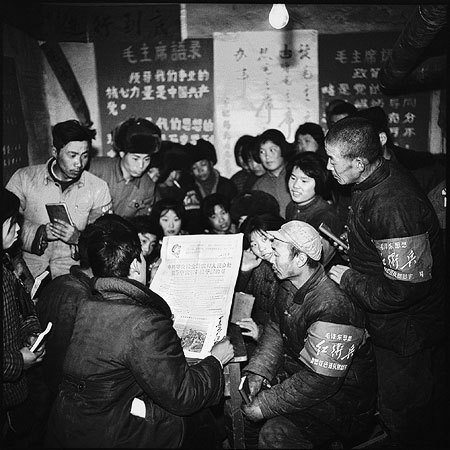 Peasants in the countryside gather to read "A letter to peasants from the Central Committee of the Chinese Communist Party" published in the Heilongjiang Daily Shangzhi county, Heilongjiang province October 11, 1968 © Li Zhensheng