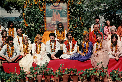 The Beatles with the Maharishi Mahesh Yogi at his ashram. Rishikesh, India January 1968 © Paul Saltzman