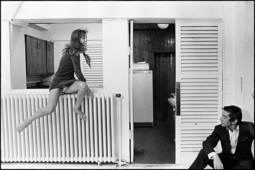 Jane Birkin with Serge Gainsbourg on the set of the film "Slogan" Paris, France June 1968 © Gilles Caron