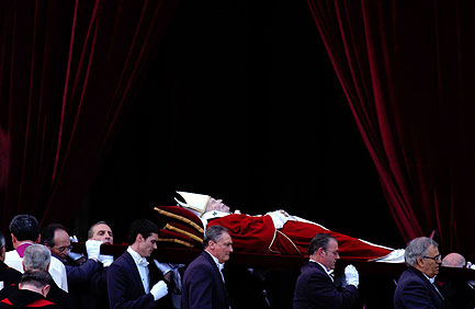 Pope John Paul II is carried into St. Peter's Basilica, Vatican City April 4, 2005 © James Hill